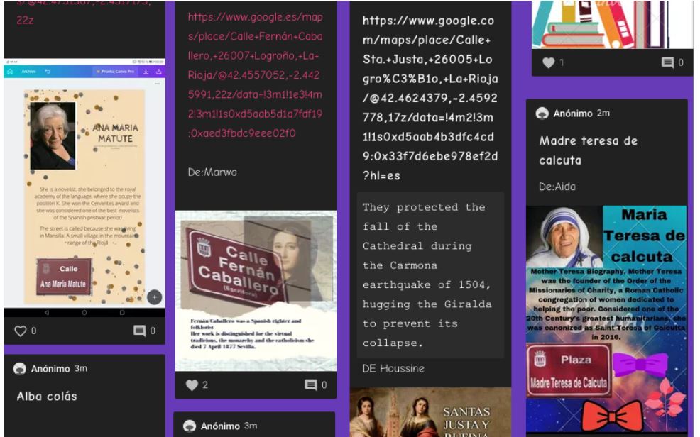 Os presentamos el Padlet en inglés que han hecho los alumnos de 1° ESO por el Día de la mujer. Han buscado calles de Logroño con nombre de mujer e información sobre ellas, además de añadir el link a Google Maps para localizar la calle.