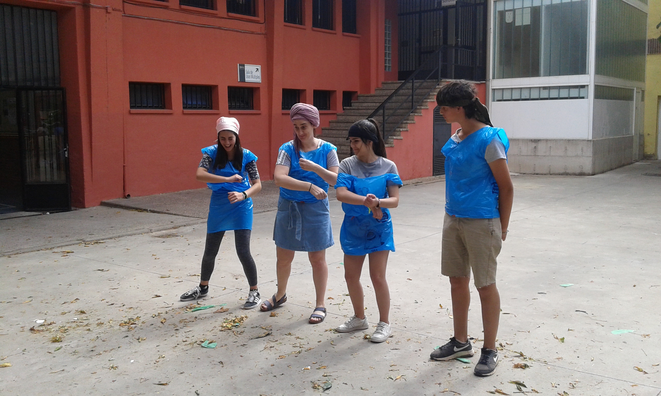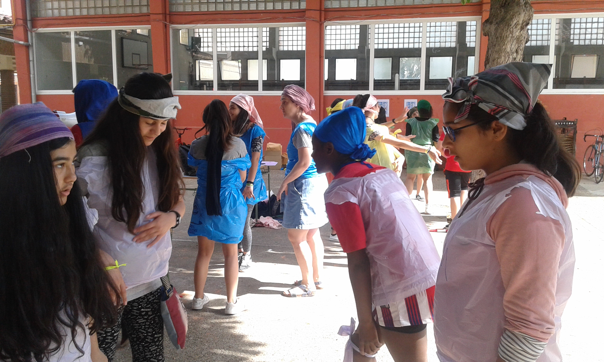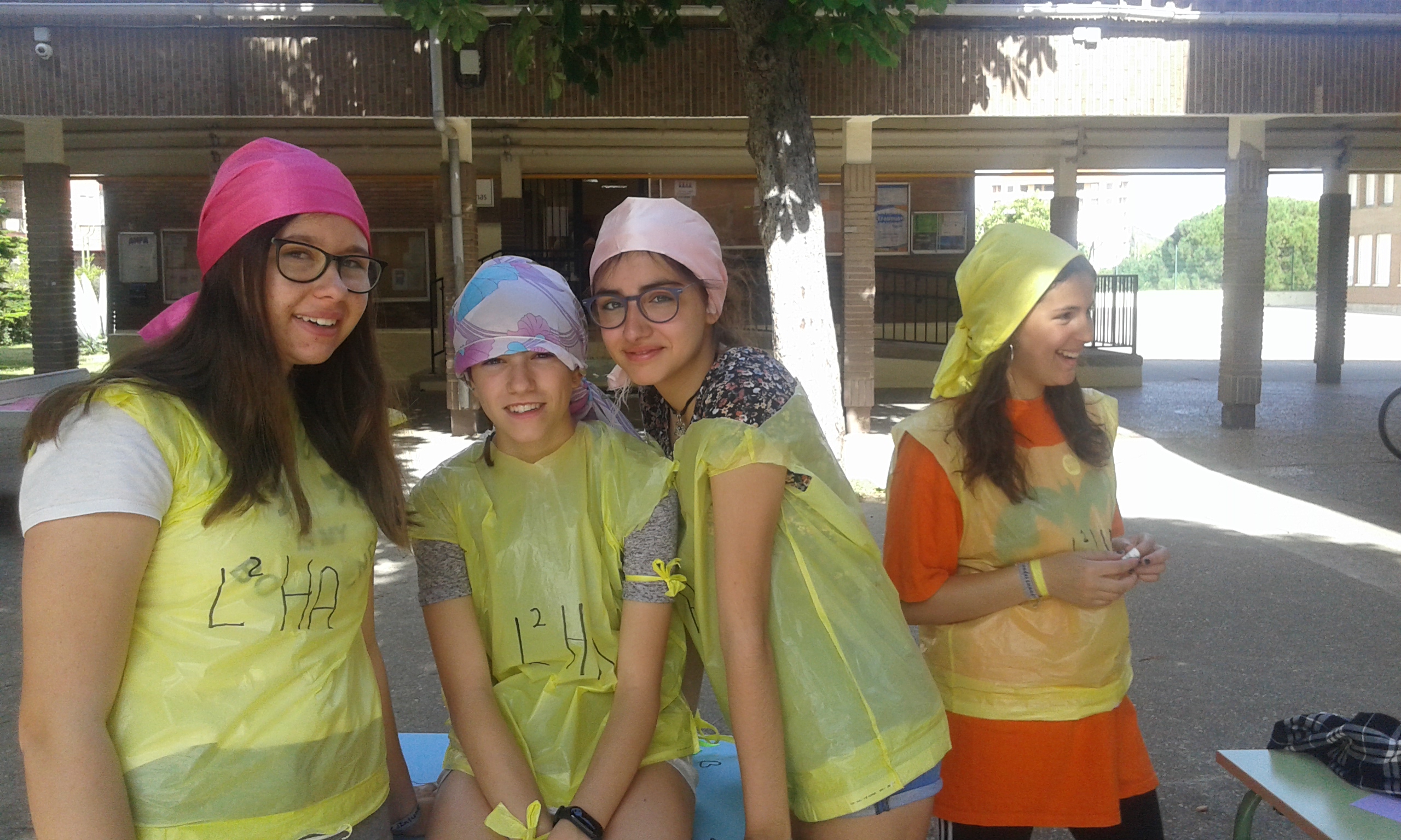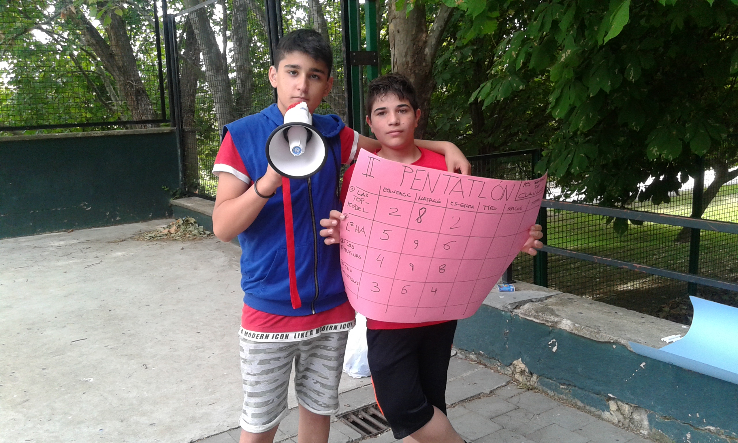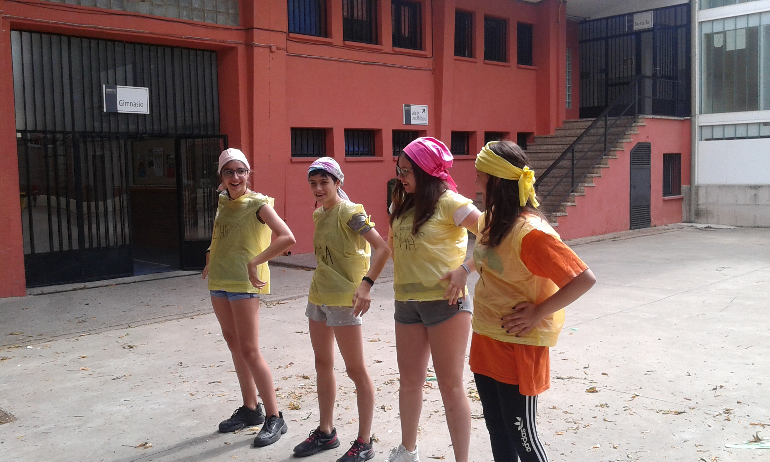 Nuestras "atletas" han participado en el I Pentatlon IES Batalla de Clavijo. Cinco pruebas internacionales: Hípica (con escoba), Natación sincronizada (fuera del agua), Es-grima (coger botones con la boca en un cubo de agua), tiro olímpico (lanzar globos de agua a una diana gigante pintada en el frontón) y Relevos (con sacos). Ha ganado el equipo Las pitufinas, pero también hasn participado y se han divertido Las top-model, L2HA y Las Tickismikis.