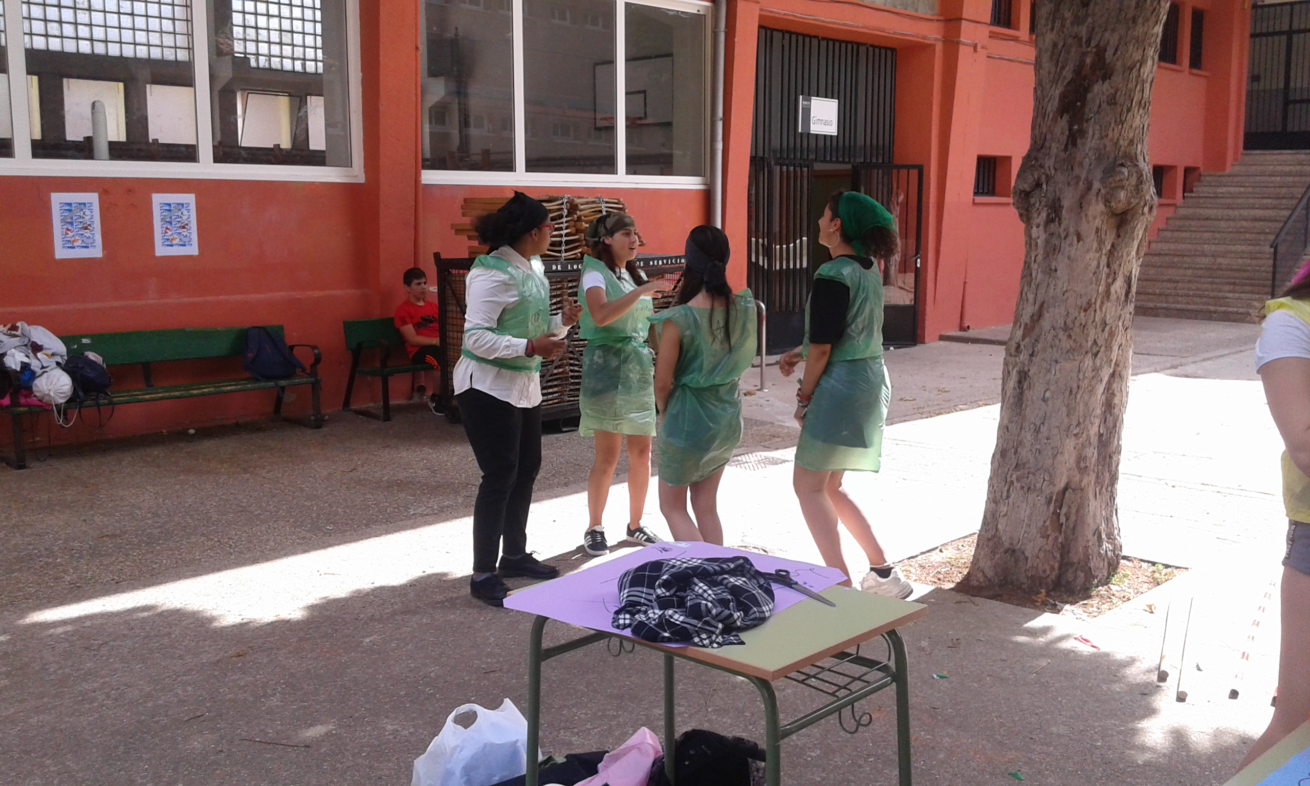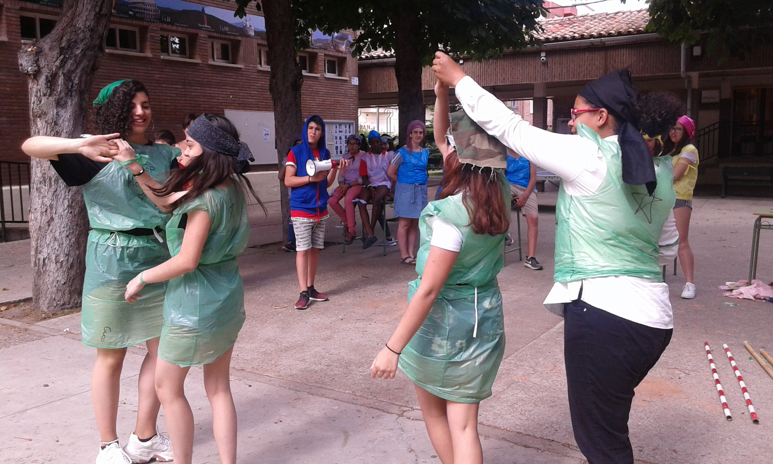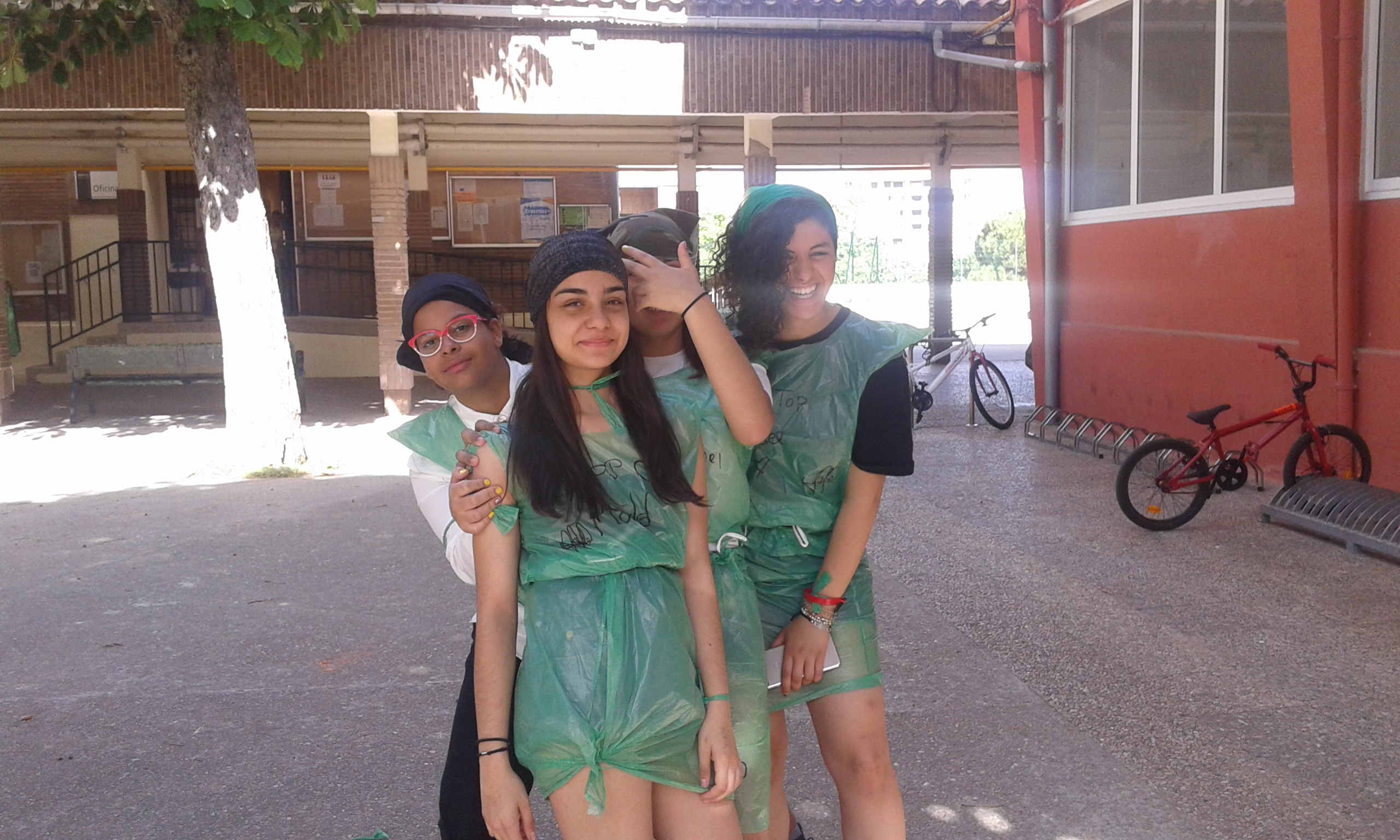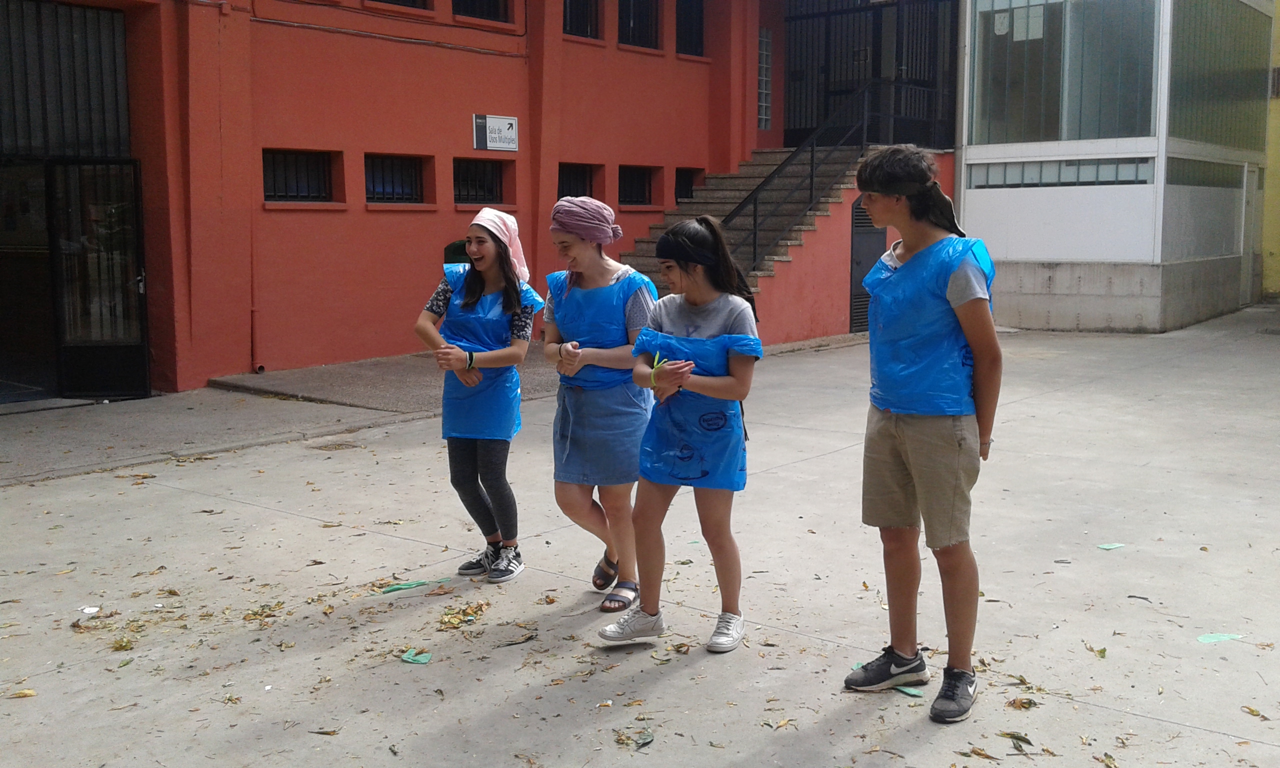 Nuestras "atletas" han participado en el I Pentatlon IES Batalla de Clavijo. Cinco pruebas internacionales: Hípica (con escoba), Natación sincronizada (fuera del agua), Es-grima (coger botones con la boca en un cubo de agua), tiro olímpico (lanzar globos de agua a una diana gigante pintada en el frontón) y Relevos (con sacos). Ha ganado el equipo Las pitufinas, pero también hasn participado y se han divertido Las top-model, L2HA y Las Tickismikis.