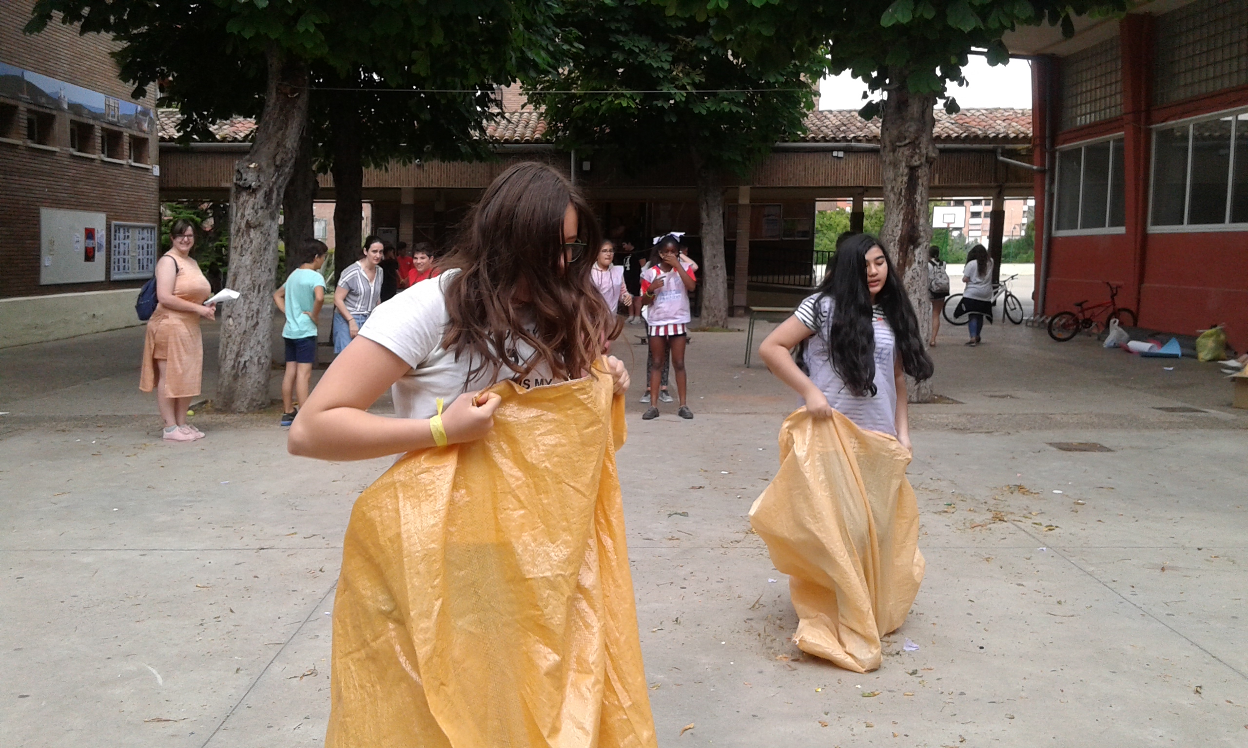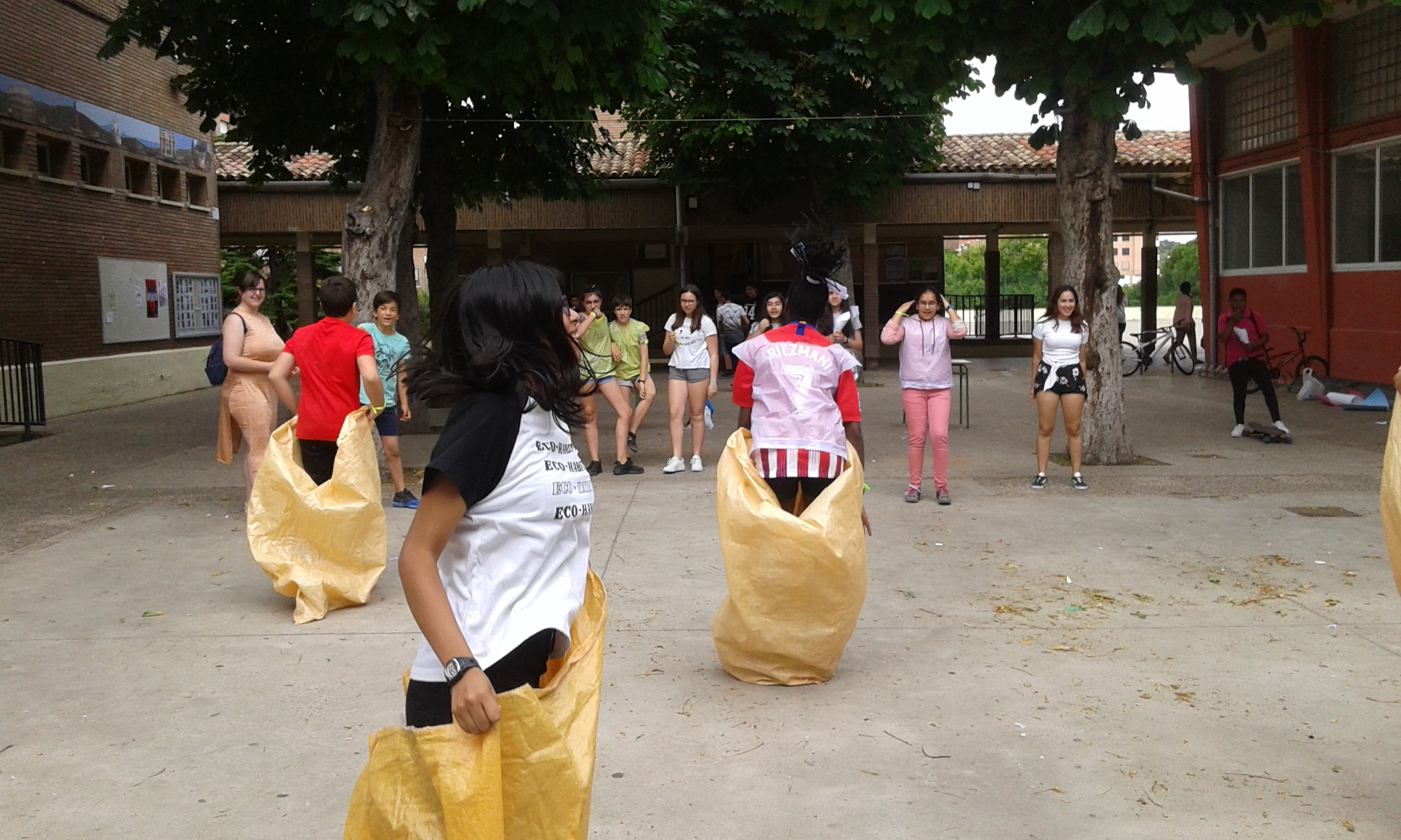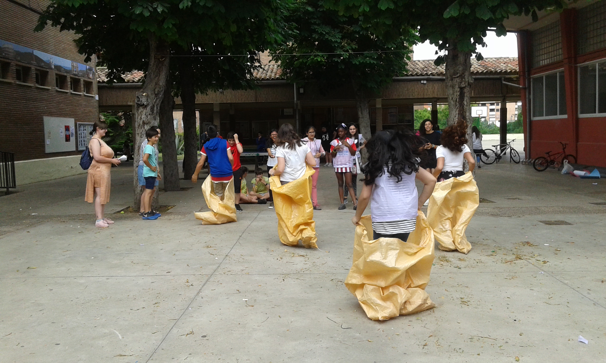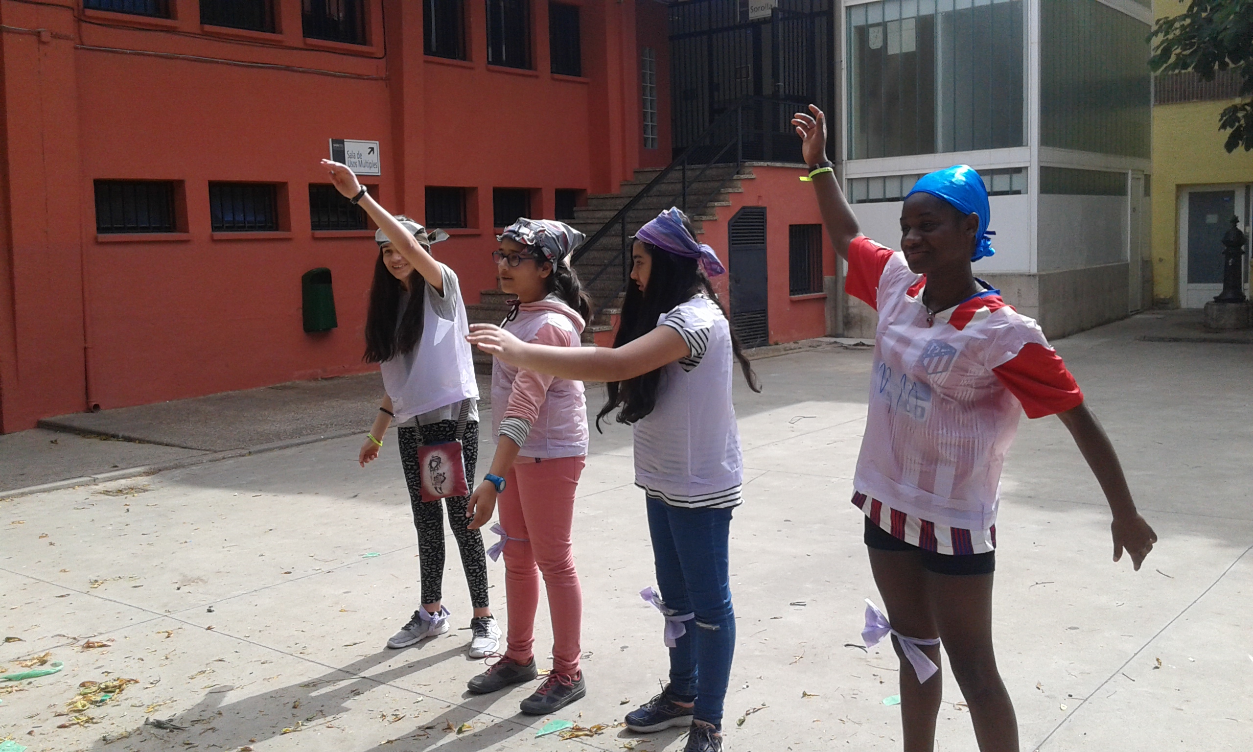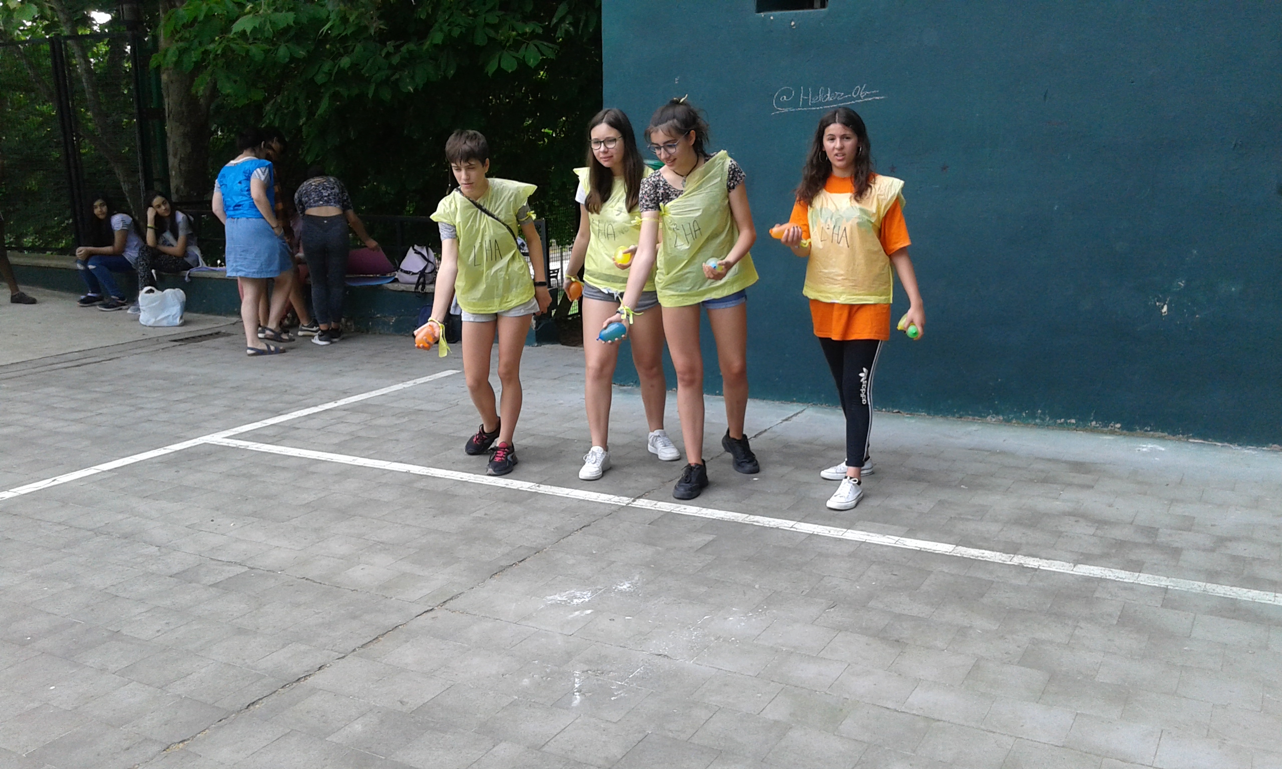 Nuestras "atletas" han participado en el I Pentatlon IES Batalla de Clavijo. Cinco pruebas internacionales: Hípica (con escoba), Natación sincronizada (fuera del agua), Es-grima (coger botones con la boca en un cubo de agua), tiro olímpico (lanzar globos de agua a una diana gigante pintada en el frontón) y Relevos (con sacos). Ha ganado el equipo Las pitufinas, pero también hasn participado y se han divertido Las top-model, L2HA y Las Tickismikis.