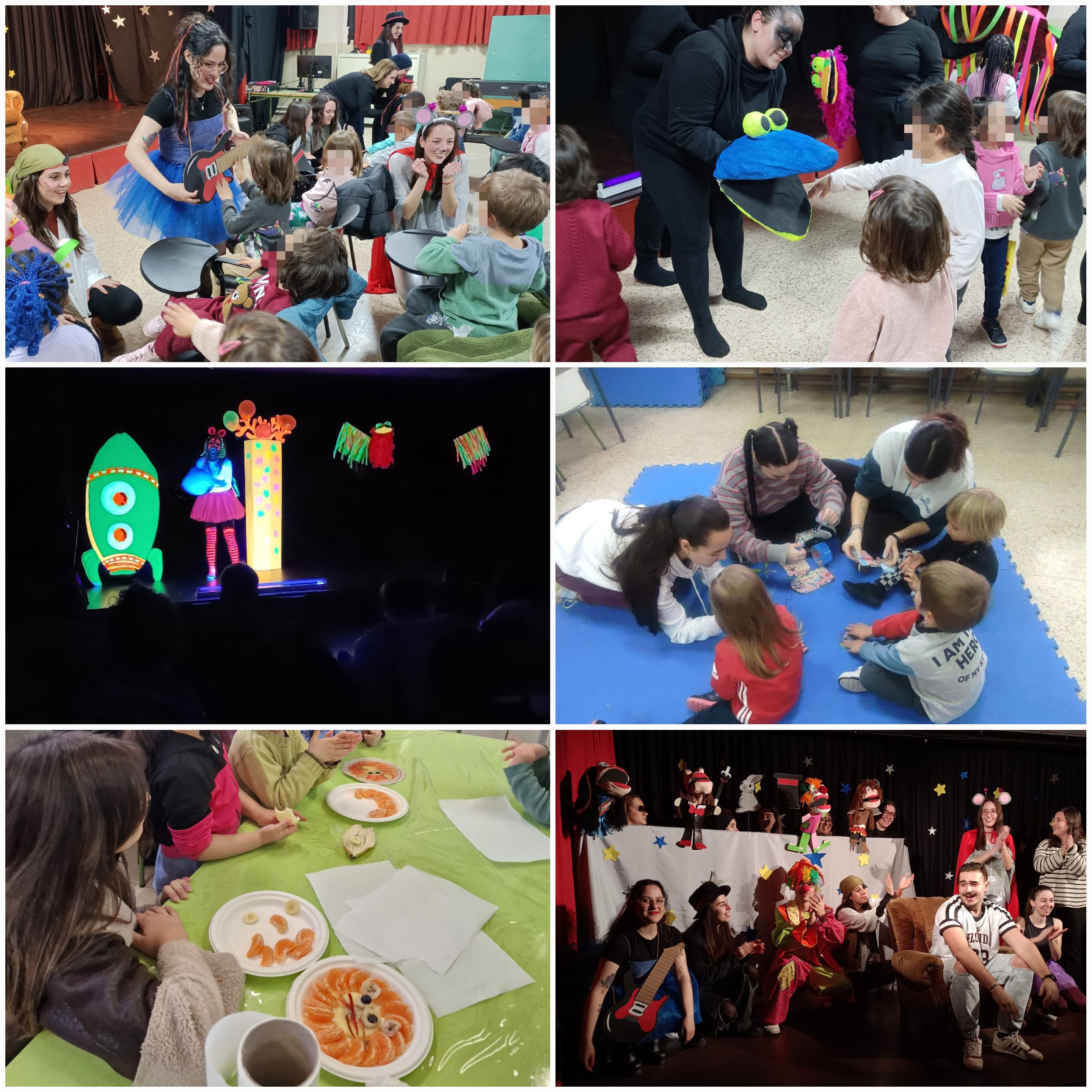 En 2º del 'Ciclo Superior de Educación Infantil' han realizado dos cuentos: un teatro acompañado de marionetas donde han viajado con Nora al mundo de los sueños; y un cuento con la mágica técnica de luz negra para recorrer con un cohete el espacio, el mar y el bosque.